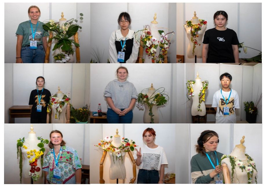 比赛现场,参赛选手围绕“以花润心,陶冶‘花之韵';如花绽放,展示‘花之美'”的主题,结合现有的花材,巧妙构思,精心设计,最后创作完成的人体花艺作品设计新颖、制作精美,尽显人与自然和谐之美,充分展示了选手们在设计创意、立体结构、植物搭配、审美鉴赏、动手制作等方面的技术技能水平。