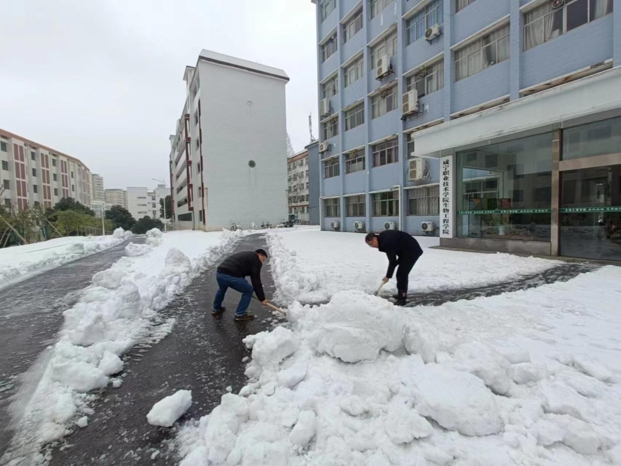 近日,冰雪冻雨给湖北咸宁带来了宁静与美丽的风景,但也给学校复学复课工作带来了一些影响。为确保学校安全运行、学生安全返校,2月22日beat365官方网站(乡村振兴学院)迅速行动起来,组织了“自扫门前雪”清扫活动。