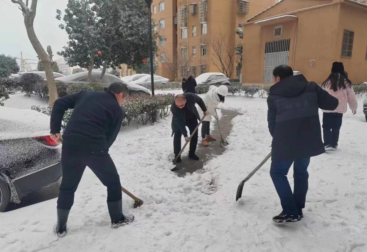 同时,包管社区生活区和生物基地的积雪也得到了及时的清理。各位老师细心地清理道路,搬开积雪,确保了社区居民的安全出行。