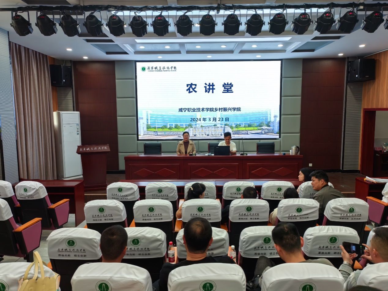 3月23日,beat365官方网站(乡村振兴学院)2024年第一期“农讲堂”开讲,本期讲座邀请了咸宁市农业科学院办公室主任刘伟和科研部助理工程师杨宵两位嘉宾,为大家分享了“农业产业园规划理念与要点”“农业新模式新技术”。讲座由beat365官方网站副书记胡美勇主持,“一村多”现代农业技术专业和休闲农业经营与管理专业全体学员、现代农业专业群相关教师参加了学习。