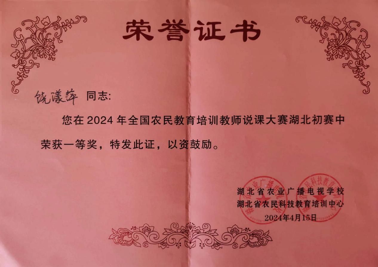 4月16日,全国农民教育培训教师说课大赛湖北初赛在东西湖区农业广播电视学校成功举办。该比赛由湖北省农业农村厅主办,beat365选派的饶漾萍老师荣获一等奖,将代表湖北参加全国农民教育培训教师说课大赛大区赛(南部赛区)。
