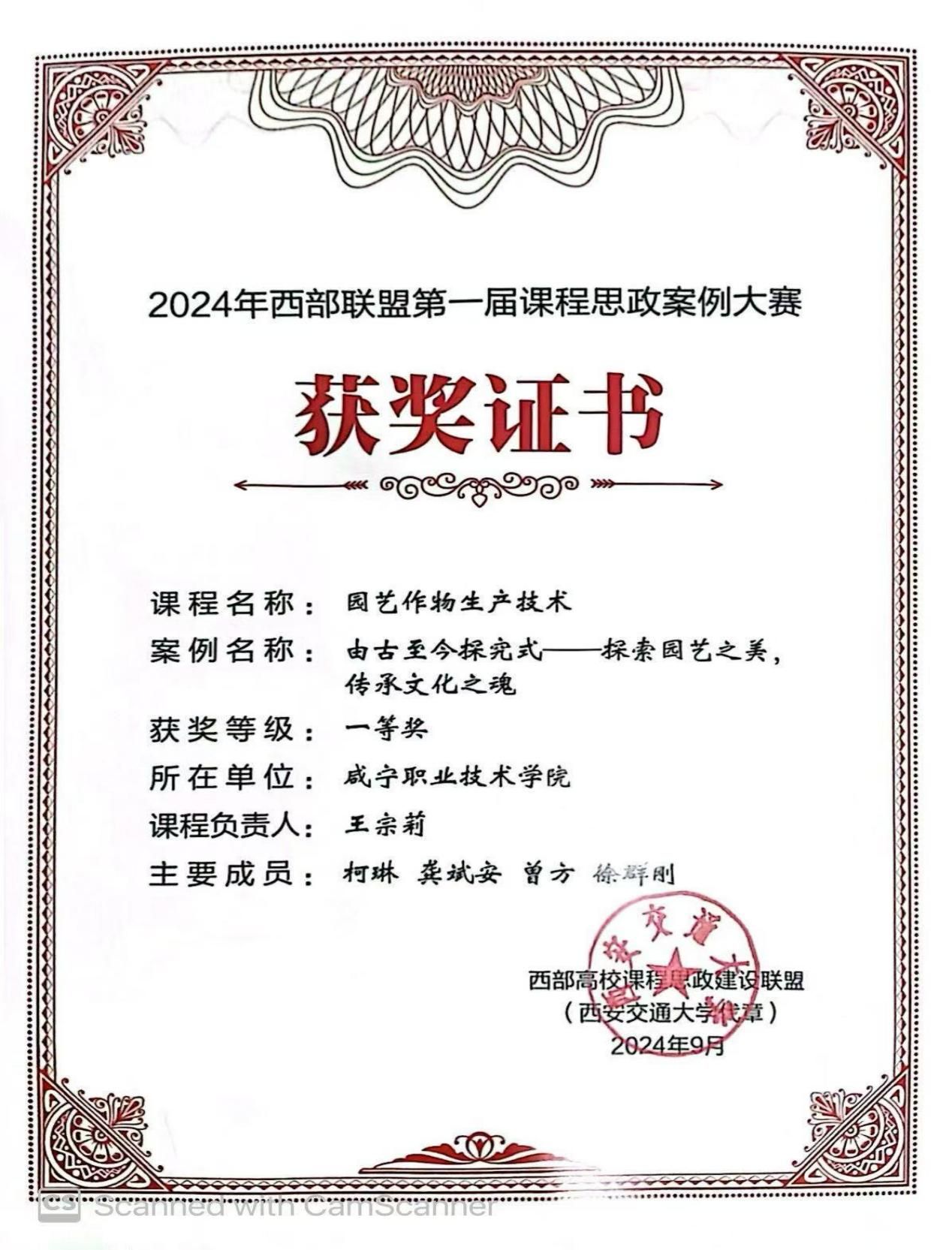 近日,由西部高校课程思政建设联盟主办、西安交通大学承办的“2024年西部联盟第一届课程思政案例大赛”圆满落幕。本次大赛于2024年4月至6月举办,吸引了来自陕西、甘肃、河南、宁夏、青海、新疆、江苏、吉林、湖北等地区高校的552位教师参赛。经过激烈角逐,beat365官方网站beat365官方网站(乡村振兴学院)教师团队凭借案例《由古至今探究式——探索园艺之美 传承文化之魂》脱颖而出,荣获一等奖。
