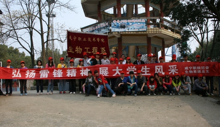 阳春三月,万物复苏,2013年3月10日上午9点,生物工程系团总支全体志愿者登上香吾山,开展了以“爱我咸宁,环卫有我”为主题的清扫活动。