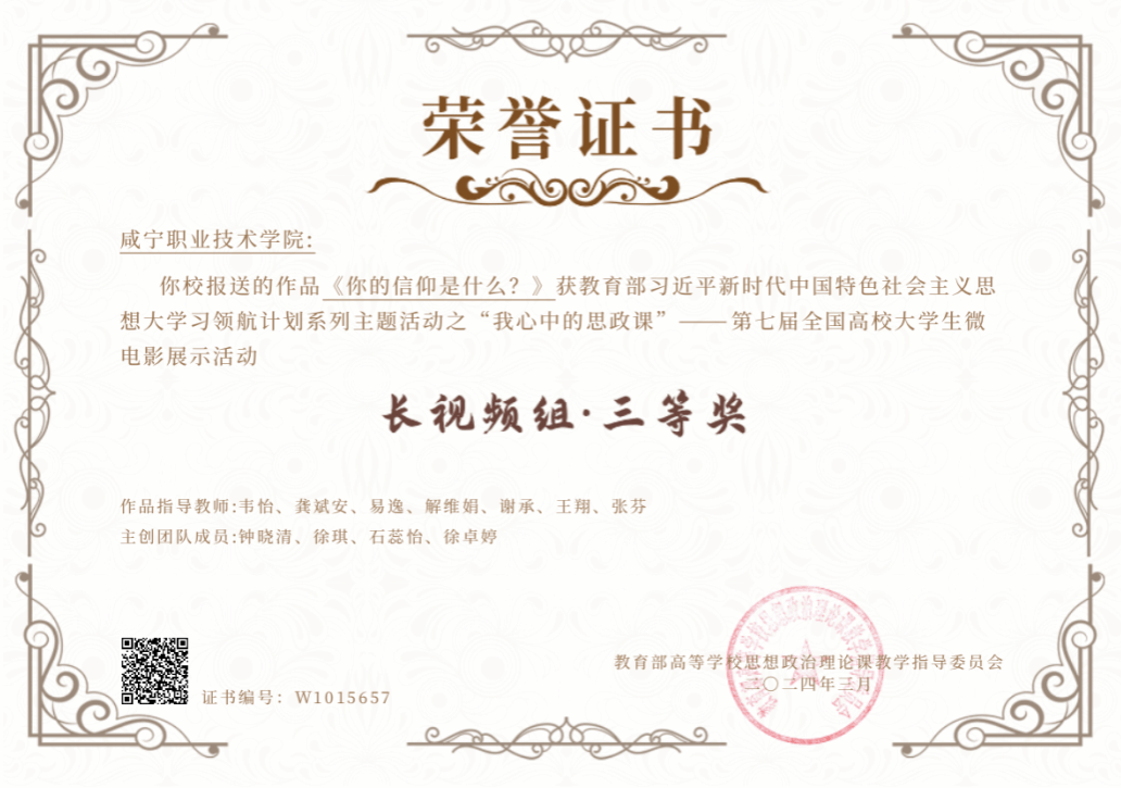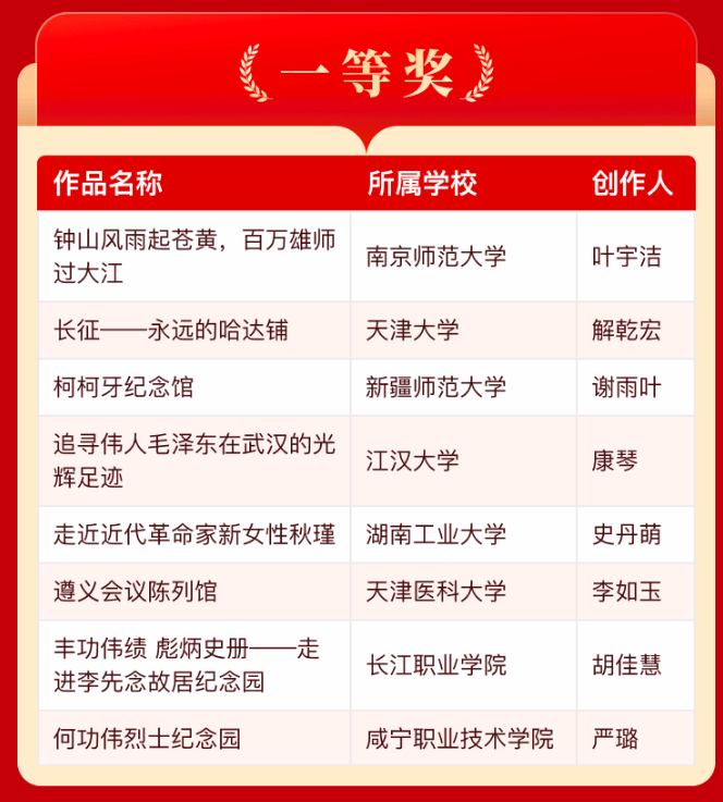 2023年以来,beat365学生严璐、吴柳爚、毛天参赛的作品《何功伟烈士纪念园》获第二届全国大学生红色全景资源创意展示大赛一等奖,学生钟晓清、石蕊怡、徐卓婷参赛的2个作品《弘扬优良作风,树立时代新风》、《你的信仰是什么》分别获得第七届全国高校大学生讲思政课公开课展示活动二等奖和三等奖。