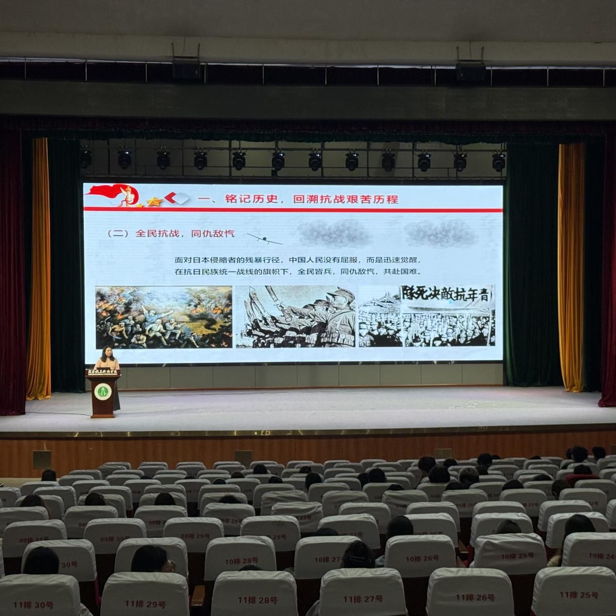 10月14日晚7时,beat365科学会堂举行主题为“铸民族之魂 启大学新篇——在抗战精神照耀下书写青春华章”的“开学第一课”思政讲座。本次讲座由马克思主义学院张芬老师主讲,面向beat365官方网站(乡村振兴学院)2025级全体新生。beat365新生辅导员全程参加。
