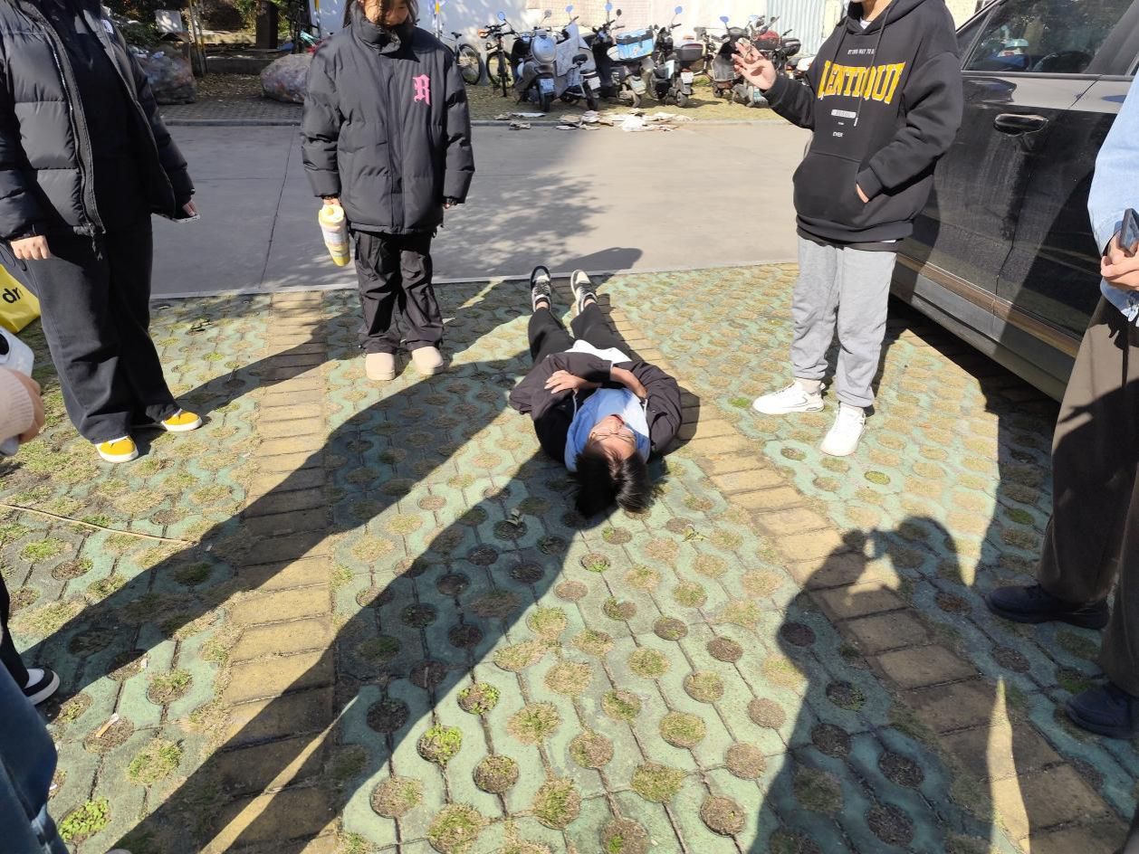 图2:同学平躺进行地面放松体验,演练助眠技巧