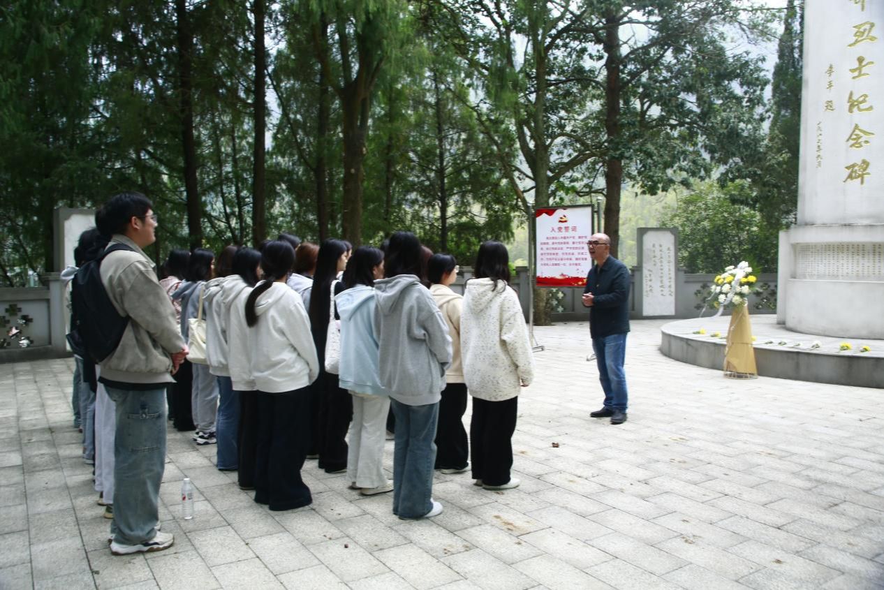 参观环节结束后,全体成员移步至冷水坪革命纪念碑前。首先,由入党积极分子代表向革命先烈敬献花篮,表达后辈对前辈的无限哀思与崇高敬意。接着,全体人员肃立,向为革命事业英勇献身的先烈们默哀一分钟。默哀毕,入党积极分子代表樊帆同学在纪念碑前作了发言。他代表全体积极分子表达了继承革命遗志、坚定跟党走的决心,表示将珍惜来之不易的幸福生活,努力学习科学文化知识,锤炼过硬本领,以实际行动积极向党组织靠拢,争取早日成为一名合格的共产党员,为实现中华民族伟大复兴贡献青春力量。