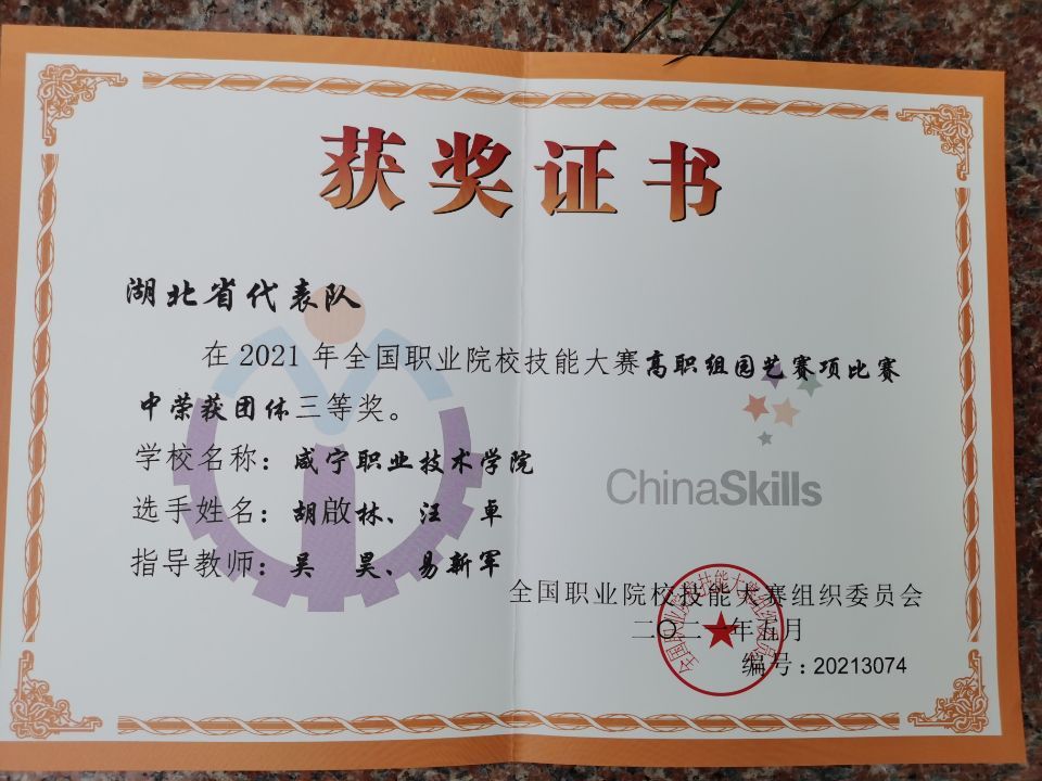 杨柳艺,2019届园林技术专业学生,在校期间获全国职业院校职业技能大赛“园林景观设计与施工”赛项二等奖、湖北省职业院校职业技能大赛“园林景观设计”赛项一等奖,2019 年通过专升本考试被江汉大学录取,现考上咸宁市公务员。