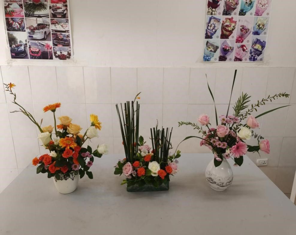 为贯彻落实党中央技能人才工作重要指示精神,推进beat365“技能校园”建设工作,11月1日,beat365官方网站在生物基地花艺实训室开展了“花艺”技能竞赛活动,2021级休闲农业经营与管理专业全体同学参加了比赛。beat365周艳丽、吴昊、陈海霞三位教师担任此次比赛的评委。
