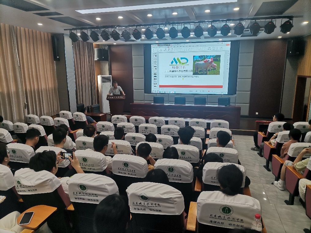 大会首先由张勇军介绍了企业基本情况以及双方合作的基本模式,接着蓝天生结合农牧行业实际就学生职业规划进行了合理的建议,并就农牧行业中的一些技术问题进行了耐心的讲解,紧接着由优秀实习生王学梅根据自己实习中遇到的问题对学弟学妹们进行了现身说法,最后万海峰博士结合自己的求学工作经历勉励大家要专心学习,苦练技能,深入企业一线。本次大会还提供了现场提问答疑的环节,使学生与企业能够就合作的具体内容进行深入的探讨和洽谈,为未来的合作奠定了良好的基础。