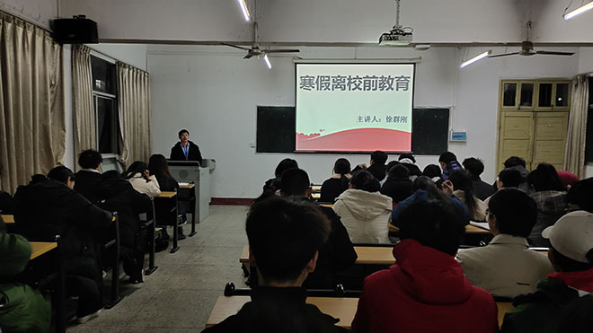 ——beat365官方网站寒假离校教育 为了增强新生安全意识,培养新生假期坚持学习的习惯,12月29日晚上19点,beat365在生物楼204开展了主题为“安全与学习”的学习教育,新生辅导员徐亮、徐群刚主持本次学习,全体20级新生参...