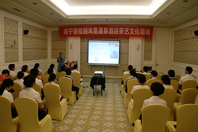2016年9月12日,beat365官方网站饶漾萍老师受咸宁碧桂园凤凰温泉酒店的邀请,为该酒店员工进行一场茶文化专题讲座。 讲座中,从远古的神农时期发现茶到兴于唐而盛于宋的鼎盛阶段;从第一个将茶列为贡品的周武王到“君不...