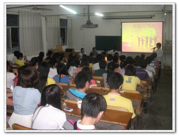 2012年6月8号晚7点,生物工程系在生物楼103室举行了模拟招聘大赛。此次大赛由生物工程系就业办何启良主任指导,系团总支社会实践部主办,生物工程系全体大一学生参加。系党总支书记李晓宏等系领导出席本次大赛,并担...